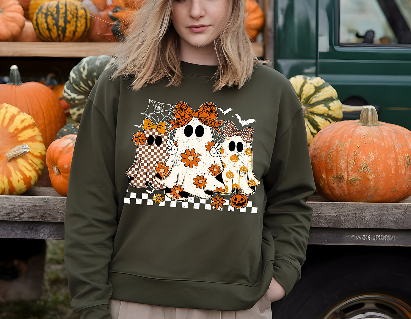 Girly Ghostie Crew - White - Full Color-DTF Transfers-RTS#34