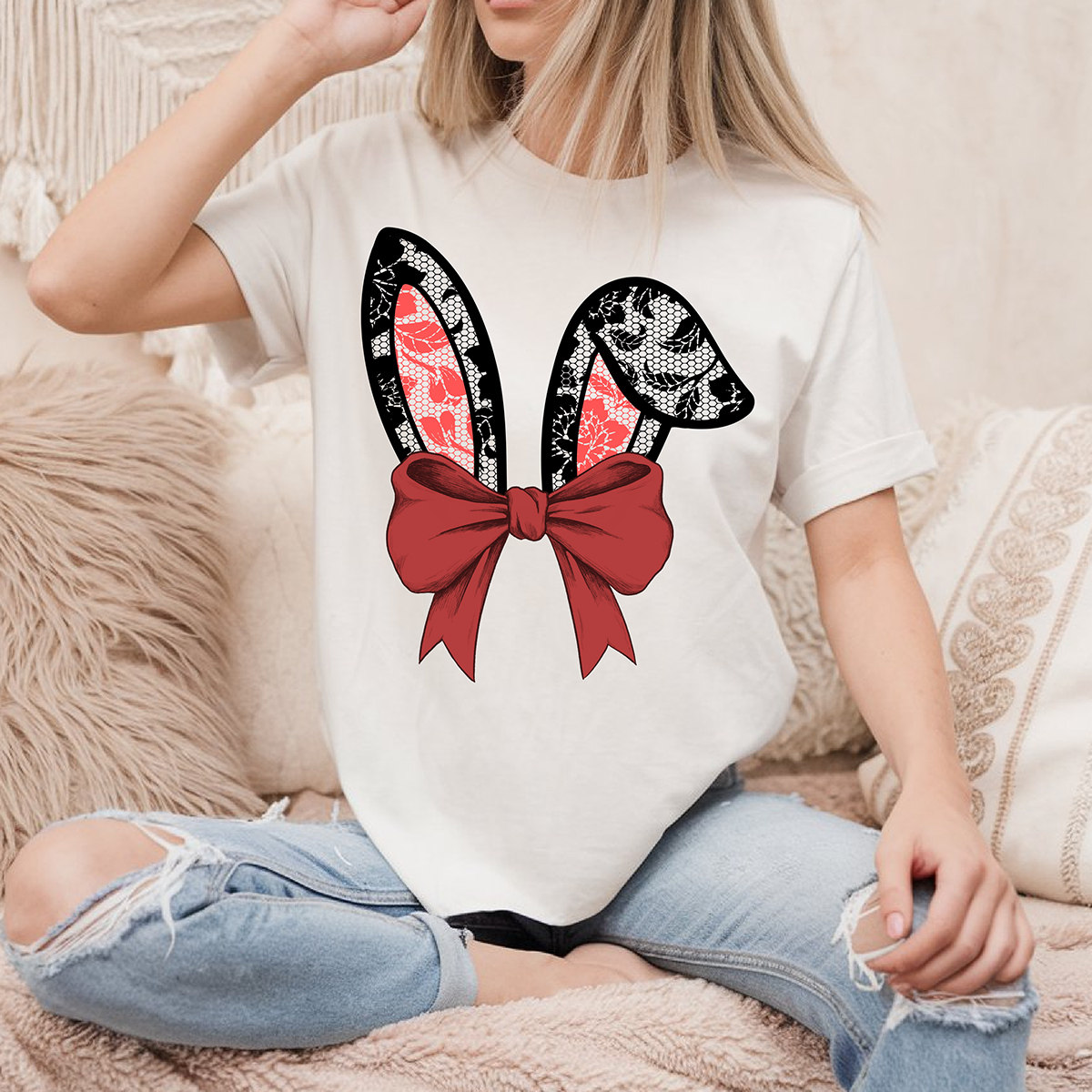 Black Lace Bunny Coquette - DTF TRANSFER