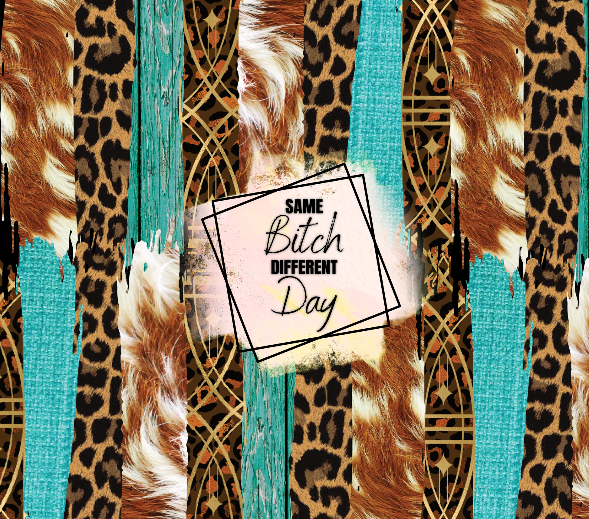 Same Bitch Different Day Turquoise and Cheetah Tumbler Wrap