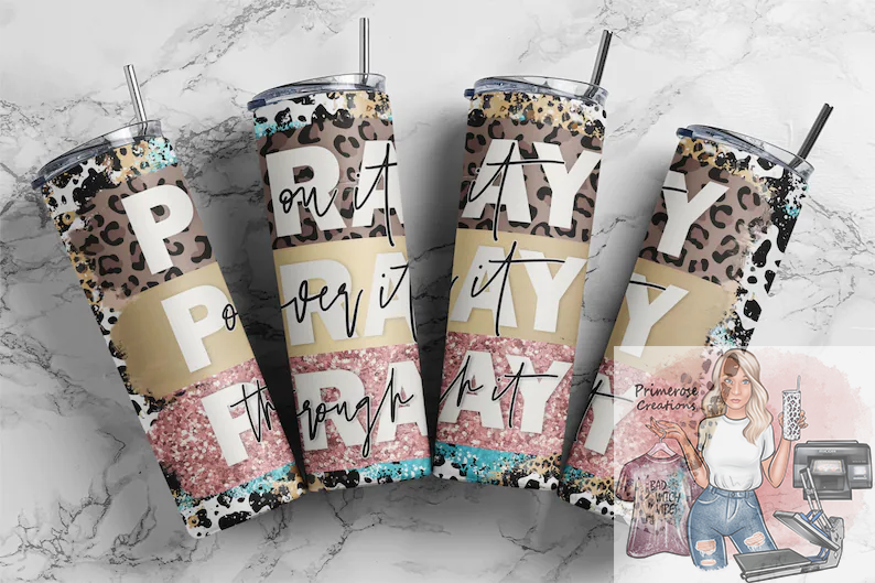 Pray Repeat and Cheetah FlowerTumbler Wrap