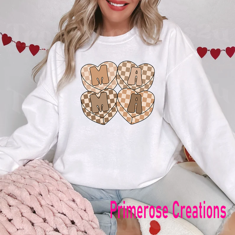 Mama Brown Heart Checkered DTF