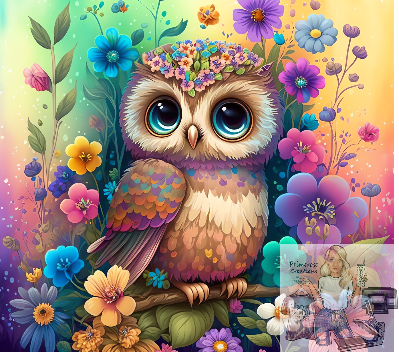 Owl and Flowers Tumbler Wrap