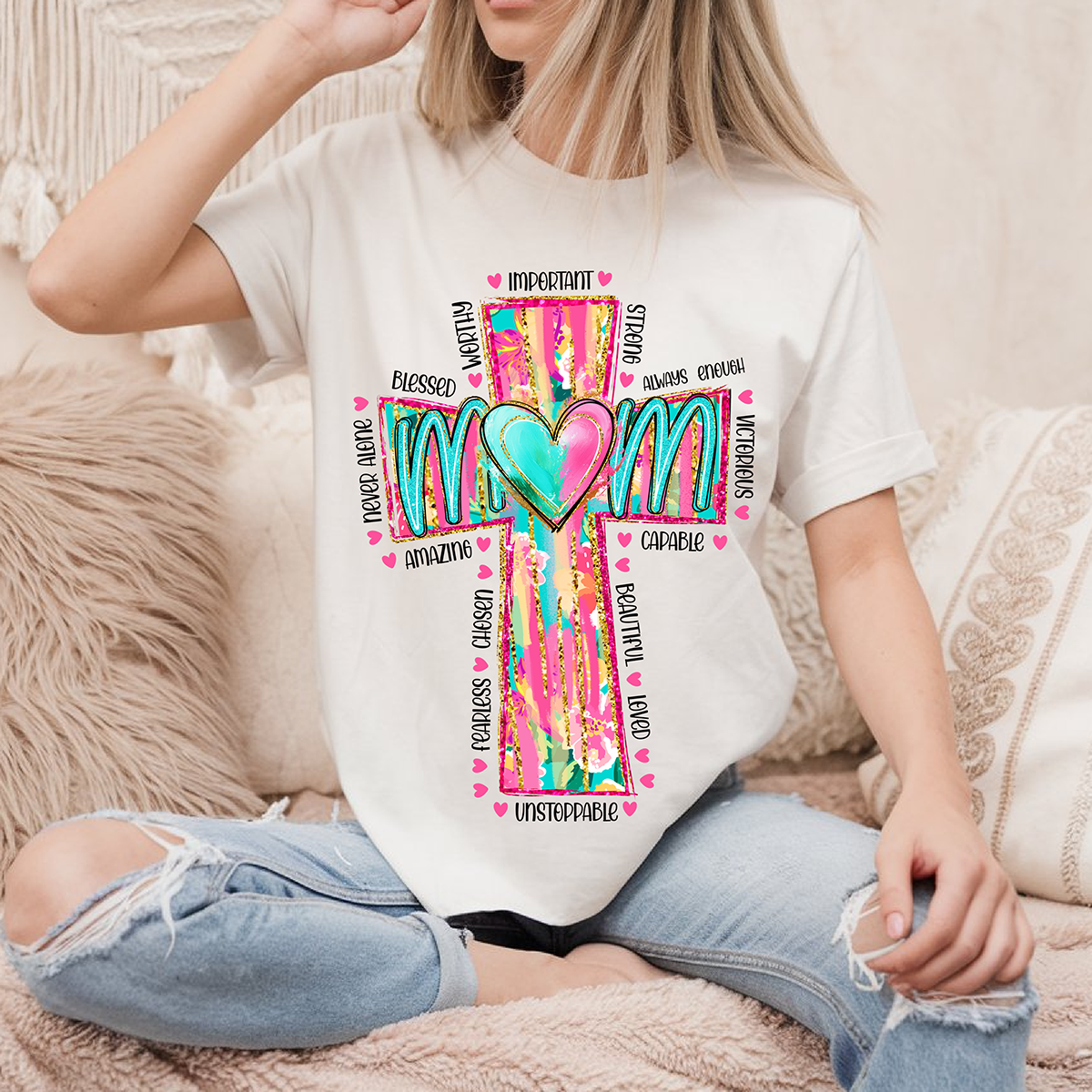 Mom Brushstroke Cross- DTF TRANSFER